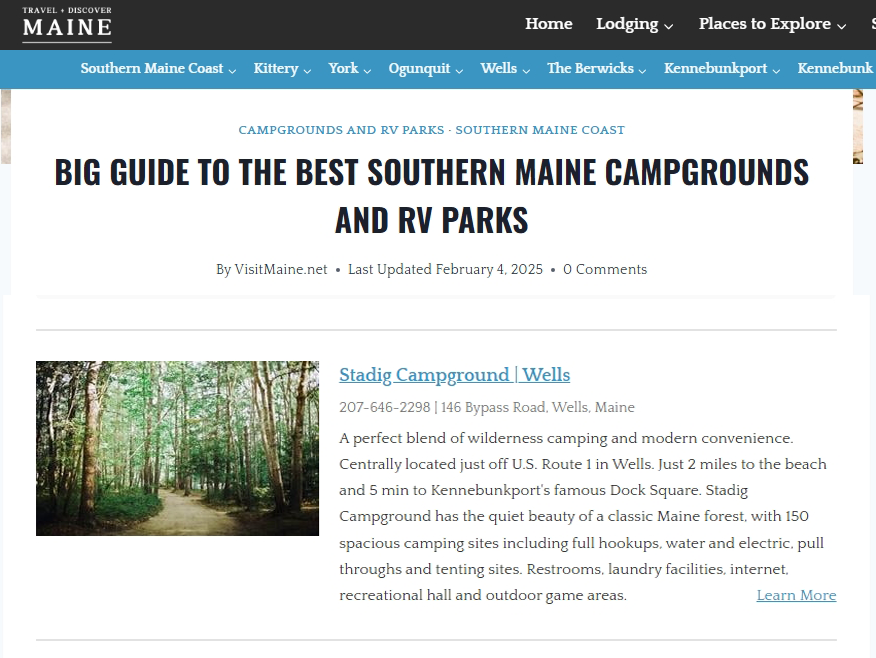 Our campground recently received recognition by Visit Maine!